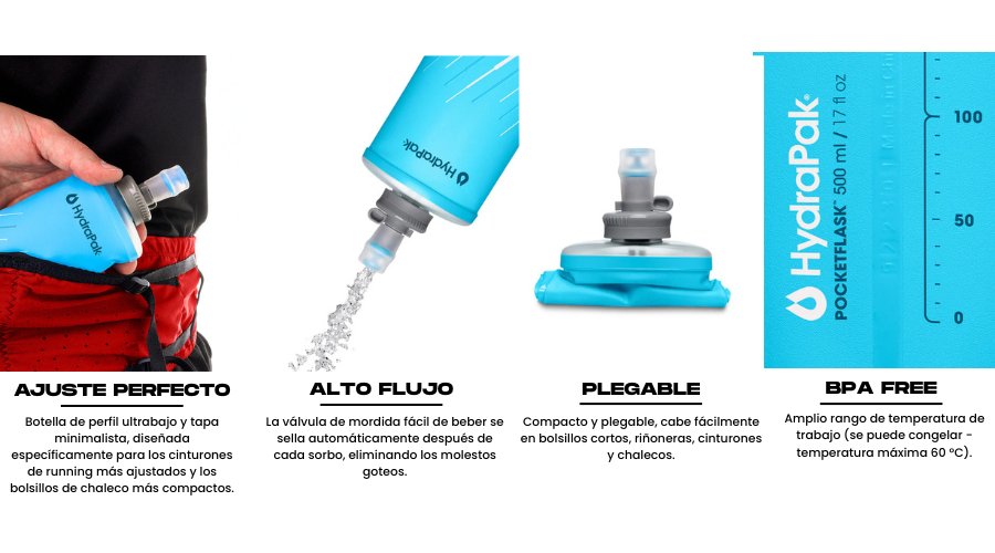 Durabilidad HydraPak: Fabricado con TPU (poliuretano termoplástico) ultra resistente y costuras soldadas. Es 100% libre de BPA y PVC, y soporta tanto el congelador como agua caliente (máx. 60°C).